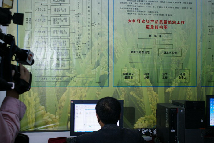 大壙圩農場2008年成為全國首批、安徽省首家實施大米生產質量追溯系統建設項目單位,歷經3年建設,目前“生產可記錄,信息可查詢,流程可跟蹤,責任可追究”的追溯系統已全面形成,倮倮大米實現了“從農田到餐桌”全程質量安全體系,3年累計追溯規模達43262畝。眼下正值該場水稻收獲、新谷收購、大米加工季節,安徽電視臺攝制組深入各農管區實地拍攝了倮倮米業原糧生產、收獲儲藏、大米加工的質量追溯過程,并向相關人員進行了現場采訪。