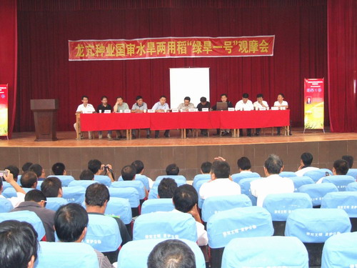 9月22日上午,龍亢種業國審水旱兩用稻“綠旱一號”觀摩會在龍亢農場召開。皖墾種業、龍亢種業、省農科院、省科技學院、四川禾嘉種業公司安徽分公司、蚌埠市農委、懷遠縣農技推廣站、懷遠縣種子站的領導和專家,以及省內外各大種業公司的銷售商、代理商近200人參加觀摩,省農科院副院長潘澤義、省農科院綠色食品研究所研究員、“綠旱一號”水稻育種人朱啟升,皖墾種業副總經理、龍亢種業公司董事長夏獻鋒,皖墾潘村湖農場場長韓大鳴等出席觀摩會,龍亢種業公司總經理、龍亢農場副場長程希文主持觀摩會。