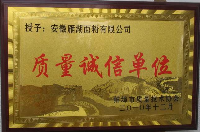 皖墾食品集團(tuán)雁湖面粉公司被評(píng)為市級(jí)質(zhì)量誠(chéng)信單位