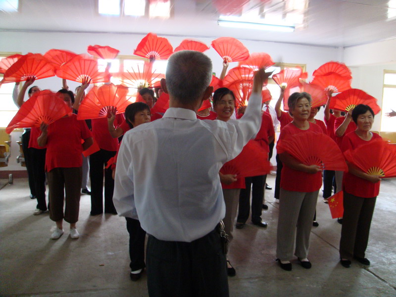 9月25日,大壙圩農場退休人員活動中心內歌聲嘹亮,由農場退休職工組成的“夕陽紅”歌唱隊和舞蹈隊正緊張地進行彩排,準備參加由場工會組織的慶祝建國60周年“紅歌演唱”文藝晚會。