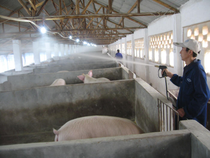 今年元月,中央財政補貼項目——生豬標準化養殖小區項目落戶農場,陳慶文成為安慶西郊項目受益第一人。財政補助19萬元、個人配套5萬元,項目共投資24萬元,對850平方米的豬舍進行全面改造,一切按標準化、工廠化模式設計建設,原來的粗放式豬舍改為全封閉式結構,原來的單道運飼料、喂料、排污改為現在的雙道分開運行,入口處由原來的消毒劑消毒改為現在的紫外線消毒,豬舍設有電風扇、紗窗等抗熱、防蚊的設施,豬圈內實行噴槍噴霧消毒。同時建有獸醫室、消毒室、飼料車間、厭氧式發酵池、氧化塘等一整套標準化設施。陳慶文說:“住在標準間的豬很快樂!”