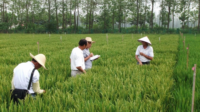 水稻育種專家江祺祥到大壙圩農場指導稻種生產