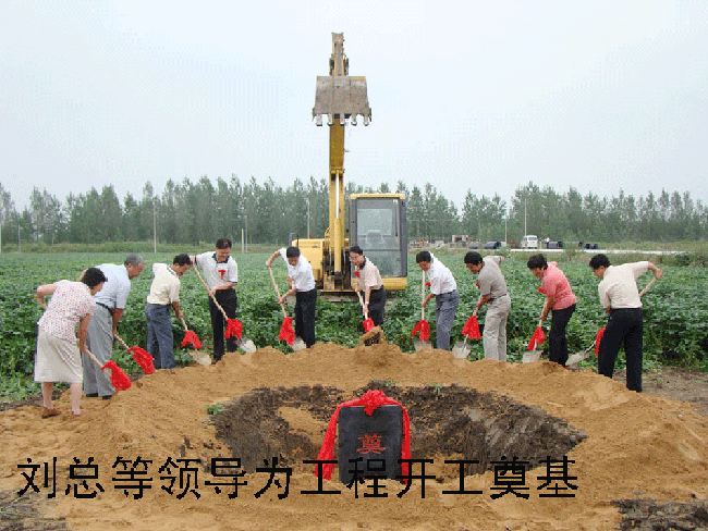 夾溝農場場長韓大鳴,承建單位——皖墾建筑公司黨委書記劉會滿及監理單位負責人分別在開工典禮上講了話。在喜慶的爆竹和音樂聲中,各位來賓和農場領導為工程開工奠基。