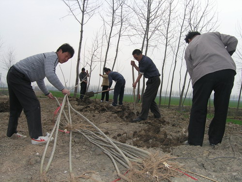眼下正是植樹造林時節。連日來,潘村湖農場掀起了植樹造林熱潮,廣大家庭農場職工將“四旁地”充分利用起來,栽種各類樹木,既綠化了家園,又播下了收獲的希望。圖為3月12日“植樹節”這天,該場一分場職工正在溝渠旁栽種樹木的情景。(楊登宏攝)