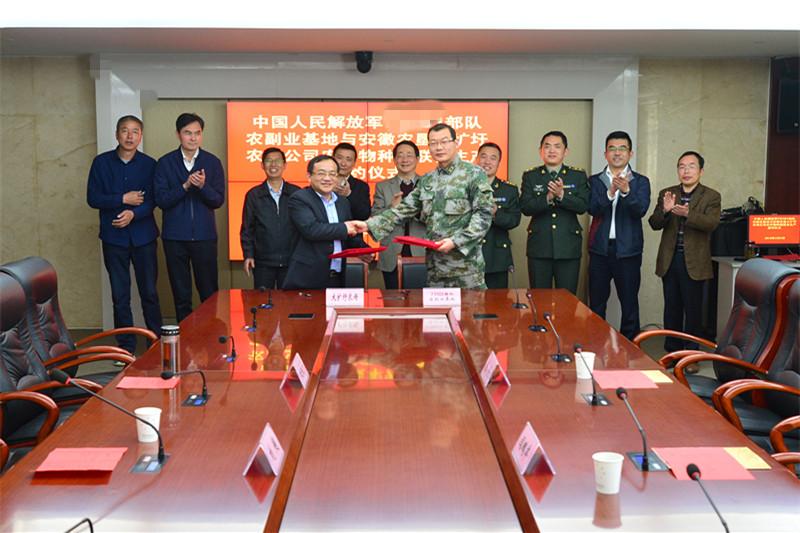 劉超在致辭中首先對解放軍某部副旅長一行到訪并簽約表示歡迎,高度肯定了該部農副業基地與大壙圩農場開展的前期農業生產準備工作。劉超指出,此次軍墾合作簽約是貫徹落實習近平總書記新時代軍民融合發展戰略的具體行動,開創了安徽農墾與軍隊合作的新篇章,充分體現了軍民魚水情誼。他表示,安徽農墾將在簽約的基礎上,加強雙方溝通對接,為下一步深化合作打下堅實基礎。