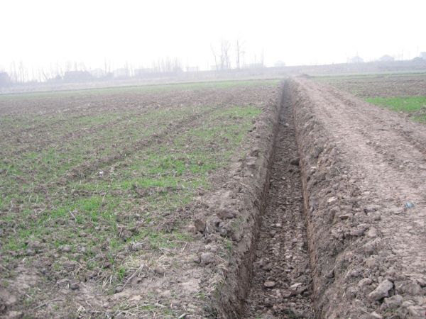 圖一為油菜地溝渠施工場面   圖二:昔日閑田  今日麥田