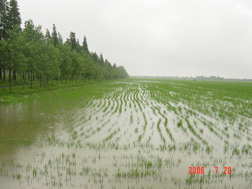 7月20 日上午7時30分至10時30分大壙圩農(nóng)場再遭強降雨襲擊 ,短短3小時降雨近100毫米,由于短時間內(nèi)降雨過于集中,雨量太大,致使部分低洼地區(qū)的秧田被淹, 農(nóng)場4個排澇總站和部分分場泵站在第一時間全力進行搶排,力爭將災(zāi)害造成的損失降到最低限度。