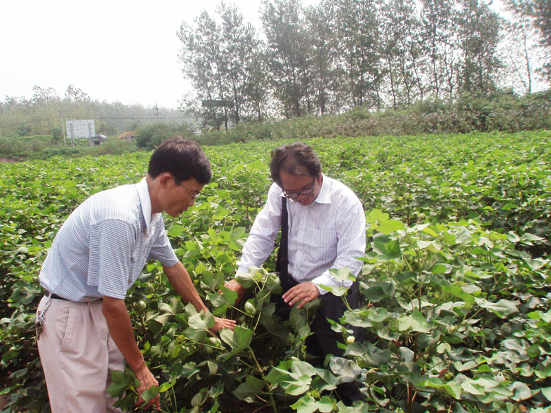 8月是18日上午,中國棉花研究所長江生態站站長、安徽省棉花高產創建技術指導小組成員周曉箭副研究員到華陽河農場,考察農場“棉花萬畝高產公關片”工作進展情況。在場棉科所所長、五場場長徐和興及有關農技人員的陪同下,周小箭站長深入棉田,認真細致地考察了棉花的生長情況,對該場該項目前期工作給予了高度評價,對下階段工作提出了的建議,為該項目的順利實施起到了積極地促進作用。