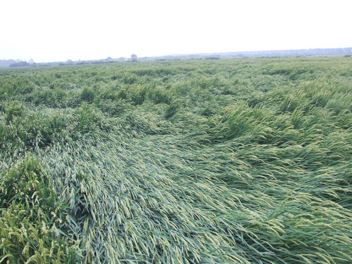 9月22日—23日,華陽河農場遭受突然而來的大風降溫天氣侵襲。強風自22日凌晨1時持續到23日13時,風力7-8級,日平均氣溫由21日的29.9度下降到23日的17.3度,溫差達到12.6度。由于天氣陡變,強風和大幅降溫,引發棉花葉片枯萎和蕾鈴脫落,處于成熟期的水稻出現倒伏,其它農作物也不同程度地受到損害。據初步統計,此次災害將造成農作物歉收1-2成。