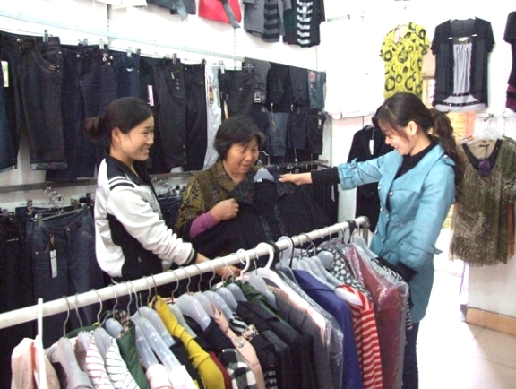 圖:孝女在母親節這天為母親選購服裝