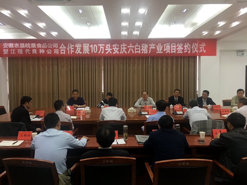 皖墾食品公司與望江現代養殖公司合作發展10萬頭安慶六白豬產業項目隆重舉行簽約儀式