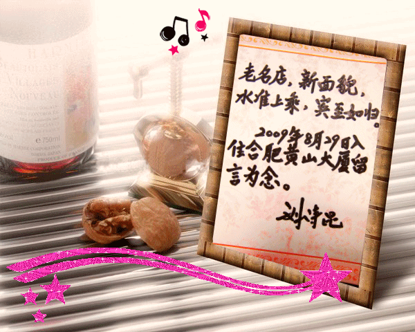 8月29日,我國著名鋼琴家劉詩昆下榻安徽農(nóng)墾黃山大廈城市商務(wù)酒店,并題詞留念。