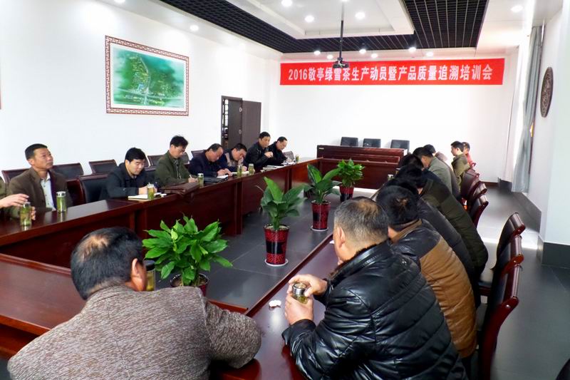 322,敬亭綠雪茶業有限公司召開春茶生產動員暨質量追溯培訓會。皖墾茶業集團農業科技部、敬亭山茶場及各分場、原料基地負責人及質量追溯技術員參加會議。