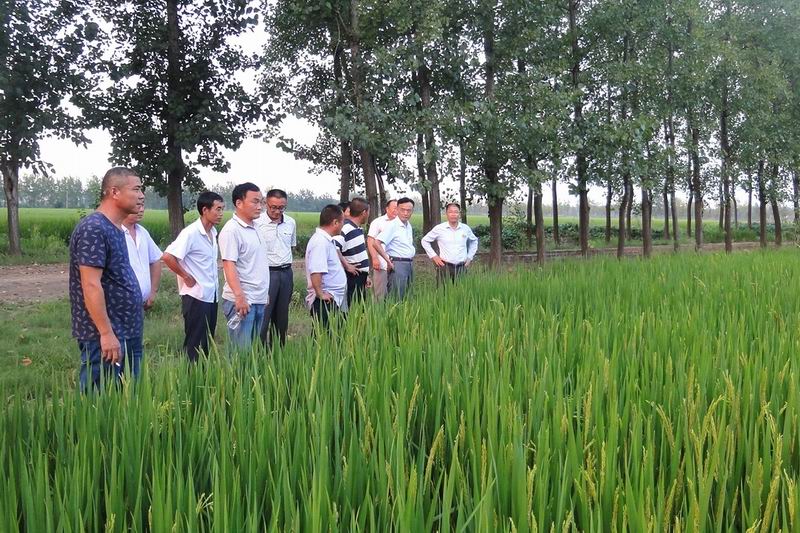 823壽西湖農場副場長袁輝率農技服務中心、各分場負責人和種糧大戶代表,到水稻田頭舉行田管現場會。