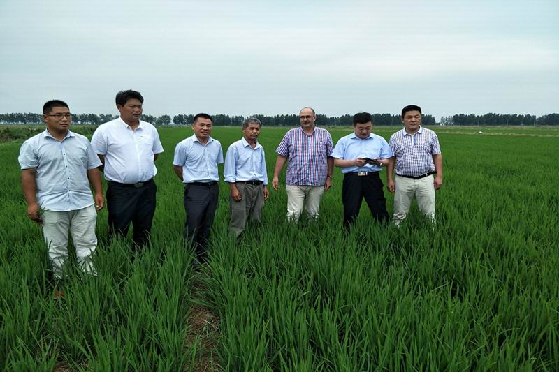 714,德國農業協會專家托馬斯博士在中國農大王化琪教授和江蘇農發、皖墾種業有關領導陪同下,到農場考察指導了旱稻種植工作。