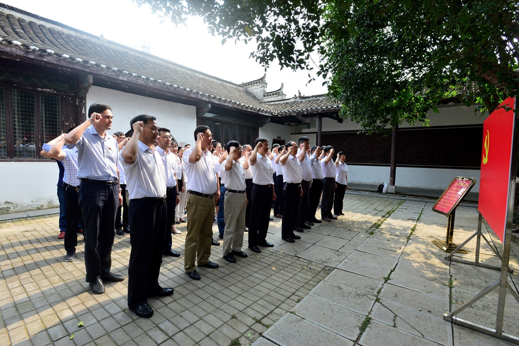 在集團(tuán)公司黨委書記、董事長詹先豪的領(lǐng)誓下,集團(tuán)總部全體黨員面對(duì)黨旗,重溫入黨誓詞。隨后,全體人員依次參觀了總前委、華東局和參謀處舊址等,認(rèn)真聆聽現(xiàn)場(chǎng)講解。紀(jì)念館中陳列的一幅幅實(shí)物和圖文資料,再現(xiàn)了一場(chǎng)軍民合作、團(tuán)結(jié)一心的偉大戰(zhàn)役,大家深切感受到革命先輩們對(duì)共產(chǎn)主義事業(yè)的執(zhí)著追求,對(duì)“初心”和“使命”的堅(jiān)守,接受了一場(chǎng)深刻的精神洗禮。(黨群部)