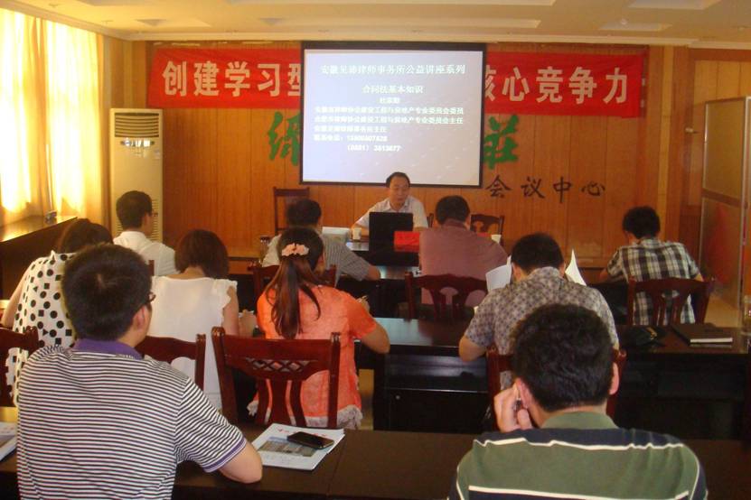 613,通和宣城公司在敬亭山茶場綠雪山莊舉辦了全員系列職業技能培訓——《合同法》及施工企業招投標法律知識培訓。