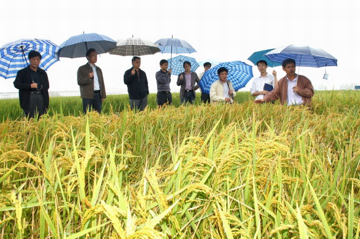 929,皖墾種業常務副總經理夏獻峰、副總經理徐成銀陪同安徽農業大學、省種子管理站專家以及周邊省份種業屆代表,實地觀摩了龍亢農場旱稻生產。