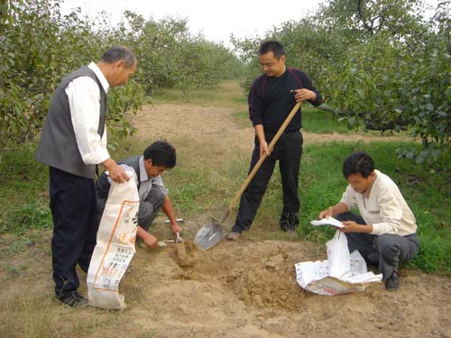 10月17-18日,碭山果園場組織全場技術(shù)人員對80個林眼進(jìn)行取樣測土,借以了解近幾年土壤中氮、磷、鉀等各類元素含量,為今后果園配方施肥打好基礎(chǔ)。