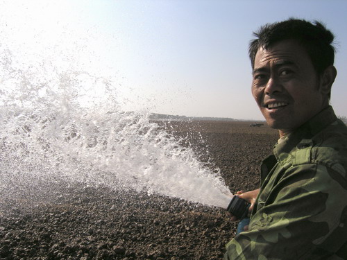潘村湖農(nóng)場積極灌溉促苗(圖)