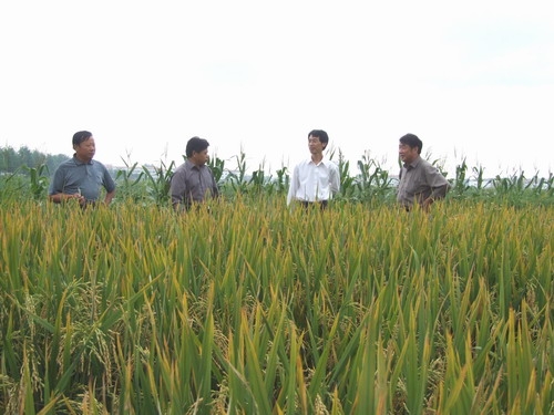 9月14日,安徽省著名水稻育種專家、省農(nóng)科院綠色食品研究所所長、旱稻品種綠旱一號(hào)育種人朱啟升教授一行3人到龍亢農(nóng)場(chǎng)調(diào)研鑒定旱稻在地生長情況。為發(fā)展適應(yīng)性農(nóng)業(yè),今年龍亢農(nóng)場(chǎng)秋季開展了旱稻試種與試驗(yàn),實(shí)驗(yàn)采用農(nóng)科院旱稻育種專家朱啟升教授選育的綠旱一號(hào),采用農(nóng)科院專門開發(fā)的除草劑除草技術(shù),經(jīng)過龍亢農(nóng)場(chǎng)農(nóng)科所技術(shù)人員的精心管理,克服了旱稻種植中雜草防除的技術(shù)難關(guān)。考察組一行在龍亢農(nóng)場(chǎng)領(lǐng)導(dǎo)的陪同下,深入龍亢農(nóng)場(chǎng)旱稻品種綠旱一號(hào)田間參觀了旱稻生長情況。調(diào)研組一行認(rèn)為該品種在龍亢農(nóng)場(chǎng)旱直播種植試驗(yàn)表現(xiàn)良好,技術(shù)措施大趨成熟,可以在江淮一帶普遍推廣。