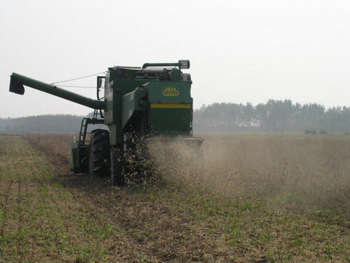 自9月底以來,潘村湖農場3萬余畝大豆陸續開鐮,到10月7日下午,全場已收獲大豆17000余畝。該場今年秋收與往年不同,由于6月底發生的嚴重澇災致使20000畝原本長勢良好的大豆被淹,7月上旬大水退后,這些地塊才重新補種上大豆等作物,因此今年全場秋收時間拉長,預計到本月中旬可完成全部秋收任務。目前,廣大家庭農場職工正一手抓搶收,一手抓備耕,確保收種兩不誤。圖為大型收割機正在田間收割大豆的情景。(楊登宏)