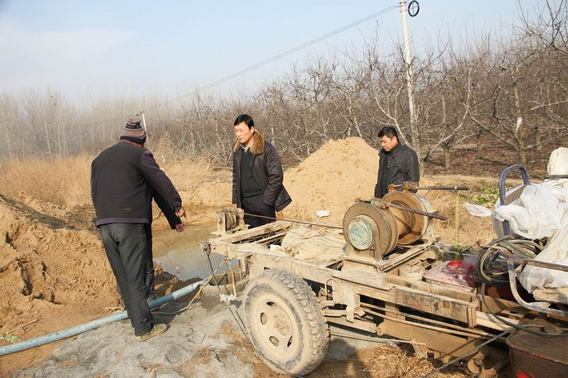 打井又挖溝,忙著冬修水利。當(dāng)前職工們正忙著打井、挖溝和林眼排水溝清淤,確保果園旱能灌、澇能排,全場到年底有望新打機井60多眼,機械開挖排水溝5000多米,近3年間共打井200多眼,已基本能解決抗旱用水的問題,也為果樹花期噴水防寒打牢了基礎(chǔ)。
