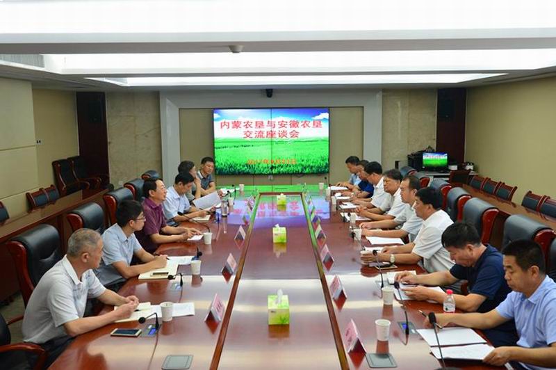 823,內蒙古巴彥淖爾市農墾局局長香建軍、烏拉特前旗旗委副書記菅江左率該旗5個農場負責人一行來安徽農墾考察交流。安徽農墾集團總經理劉超、副總經理李家堂及有關部室負責人參加座談會。