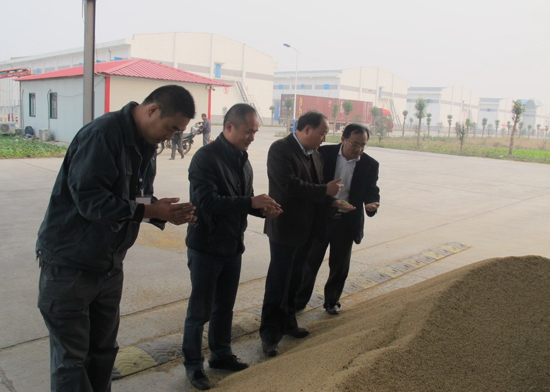 116,中儲糧滁州直屬庫主任王忠發一行來倮倮米業督查糧食安全,副董事長汪登松、副總經理楊杰陪同。