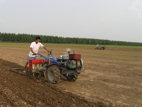 7月18日上午,在潘村湖農場一分場大田里,幾輛耕田機正在進行播種作業。