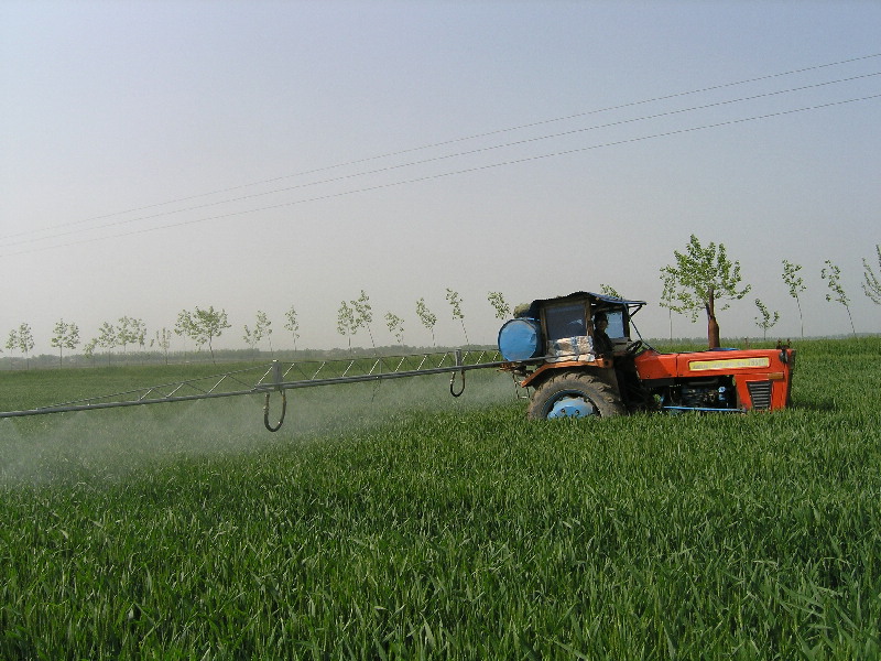針對今年小麥病蟲害呈偏重發生態勢,國家級優質專用小麥繁育基地——潘村湖農場及早啟動防治預案積極應對,從4月中旬開始在全場統一開展了以“一撒(毒土)兩噴(藥劑)三防(小麥吸漿蟲、小麥赤霉病、干熱風)”為主要內容的小麥生長后期管理大會戰。據場農技部門介紹,全場3.2萬畝小麥病蟲害防治工作將在4月29日全部結束。圖為4月25日下午,一分場和七分場職工正在大田進行第二次藥劑噴施作業的場景。(楊登宏攝)