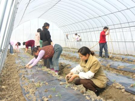 國家現代農業標準化示范場——龍亢農場今年年初投資20萬元,新建薄膜溫室10畝,從事綠色無公害特菜的試驗、示范與推廣。該溫室工程是該場建設現代農業示范園的重要工程之一,部分溫室將作為該場農科所引種特色蔬菜與瓜果品種的試驗區、示范區、推廣基地;另一部分低價位出租給職工,讓他們種植特色水果和蔬菜,由農科所技術人員給予指導和幫助,以此帶動更多的職工加入現代農業示范園建設的行列,推動園區發展。 日前該工程已全部投入使用,精心挑選的圣女系列櫻桃番茄、名特西瓜等5個新、特、優品種以入棚定植。圖為職工正在按標準化要求定植。