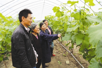 農(nóng)場(chǎng)實(shí)行產(chǎn)前統(tǒng)一品種布局、產(chǎn)中統(tǒng)一技術(shù)指導(dǎo)、產(chǎn)后統(tǒng)一對(duì)外銷(xiāo)售,同時(shí)組建了農(nóng)產(chǎn)品專(zhuān)業(yè)合作社,提高了高效農(nóng)業(yè)種植的規(guī)模化、組織化程度。2014年,朱堂芝在種好原果蔬大棚的同時(shí),又承租種植了5畝葡萄,并投資17萬(wàn)元自建2棟菇棚。因?yàn)橛辛朔N植經(jīng)驗(yàn),加之農(nóng)場(chǎng)有對(duì)外銷(xiāo)路的保障,當(dāng)年菇棚的畝均產(chǎn)值達(dá)10多萬(wàn)元,畝均利潤(rùn)超3萬(wàn)元。她一年高效農(nóng)業(yè)種植總效益達(dá)30多萬(wàn)元。