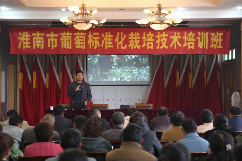 集訓(xùn)中,淮南市果樹站站長(zhǎng)史樹仁以“巨峰”品種為例,主要講授了葡萄標(biāo)準(zhǔn)化栽培技術(shù)及發(fā)展前景,并結(jié)合去冬雪災(zāi)凍害造成部分葡萄至今不萌芽的問題,為種植戶給出了解決方案。安徽元貞葡萄幫總經(jīng)理丁樹洪結(jié)合豐富的生產(chǎn)管理經(jīng)驗(yàn),著重講解了葡萄施肥、病蟲害防治等關(guān)鍵技術(shù)要點(diǎn)。課后,兩位專家?guī)ьI(lǐng)學(xué)員走進(jìn)農(nóng)場(chǎng)葡萄園,現(xiàn)場(chǎng)進(jìn)行了技術(shù)指導(dǎo)和釋疑解惑。
