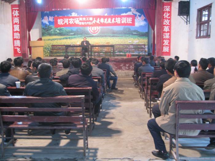 49,皖河農場舉辦了“2010年第一期陽光工程培訓班,特邀安慶市農委相關專家,重點講授了小麥中后期田間管理的技術要點,以及棉花營養缽、育苗技術等相關知識,受訓農工達150余人。