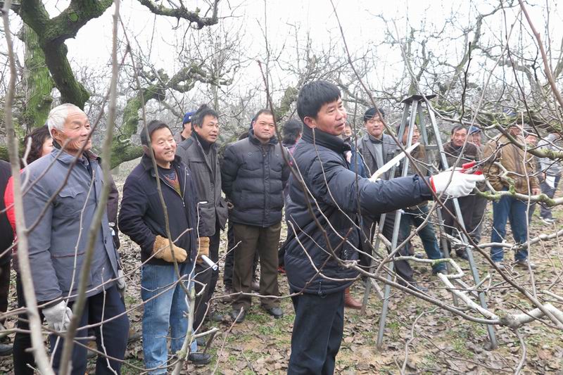 1210碭山果園場舉辦果樹冬季修剪培訓班,場技術骨干現場對梨樹、桃樹冬修技術要點和操作規程進行了示范指導,全場200多名職工參加培訓。