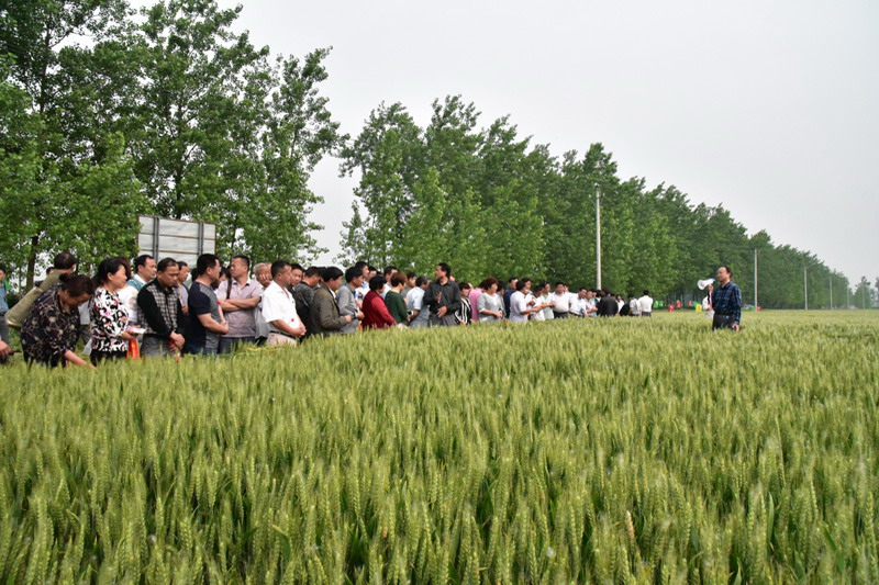 518,夾溝農場舉辦2015年萬畝小麥高產創建觀摩會,總農藝師黃愛國介紹了高產創建的經驗做法,農業部小麥專家組成員、安徽農大胡承霖教授,省小麥產業技術體系崗位專家、該校農學院院長姚大年教授點評了高產品種特性,并現場接受了媒體記者采訪。安徽皖農種業、德龍種業負責人以及各地種糧大戶共200余人參加觀摩。