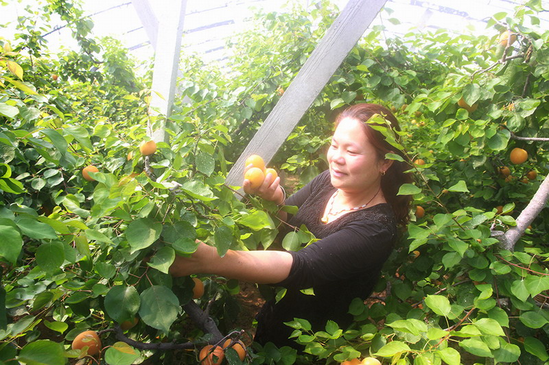 五一過后,碭山果園場職工設施大棚杏銷售接近尾聲,經濟效益可觀。筆者來到一分場設施大棚園,技術員孟凡富告訴我們:一分場今年設施大棚杏增效在10%以上,其中,王文萍家承租一個杏棚收入達3.8萬多元,由于她罩棚早,杏個頭勻、著色好、成熟早、銷路廣,售價每斤不下10元,效益再創新高。據悉,王文萍曾多次獲授省農墾高效種植十佳能手。