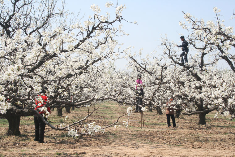 梨花授粉是酥梨生產(chǎn)中的一個重要環(huán)節(jié)。長期以來,碭山果園場高度重視此項工作,每年都制定工作方案,全面動員布置,明確專人負責,加強督促檢查。4月上中旬,全場職工全力以赴,積極采集花粉,及時協(xié)調用工,切實做好梨花授粉工作。