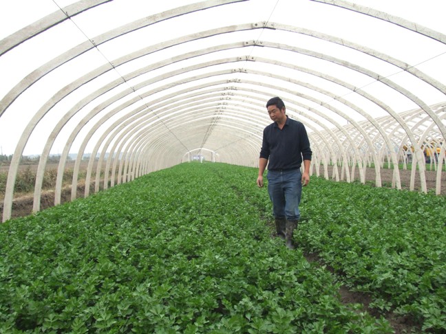 深秋,龍亢農場五分場職工柏樹棵自建的蔬菜大棚里,西芹長勢旺盛、郁郁蔥蔥,呈現出一派生機盎然的景色。今年秋季,柏樹棵在農場優惠政策的扶持下,投資8萬元建設了7畝水泥架構的蔬菜大棚,大棚內栽培的西芹畝產可達