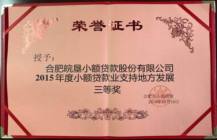 近日,合肥市人民政府通報表彰支持地方發展作出突出貢獻的金融機構,安徽農墾皖墾小貸股份公司再度登榜榮獲三等獎。