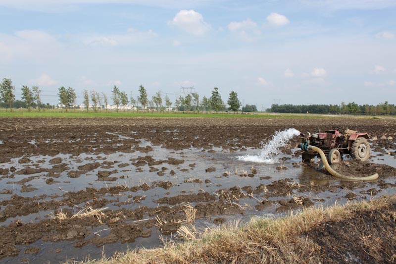 面對以上難題,淮南農(nóng)場“三夏”指揮部動員職工克服靠天等雨思想,利用機(jī)井抽水灌溉,各盡所能利用各種抗旱用具,最大限度地提高灌溉效益,同時奮力抗旱保苗。分場管理人員對井群密度大的地塊進(jìn)行科學(xué)調(diào)度,合理安排,避免了同時開井爭水造成出水率低、開動井費(fèi)用高的現(xiàn)象發(fā)生。該場“三夏”指揮部密切關(guān)注旱情發(fā)展,及時調(diào)整抗旱預(yù)案,號召職工“旱情一日不解除,抗旱一日不停止”,為實(shí)現(xiàn)秋糧豐產(chǎn)豐收打好基礎(chǔ)。