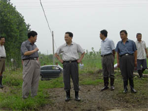 + 丁俊先一行在農場領導徐成銀、李家華、沈永輝、 施廣慶、李斌等同志的陪同下,實地查看了農場在 地作物的受災情況,徒步檢查了農場東風電力排灌 站的排澇情況,并親臨高郵湖大堤,了解水情汛 情。檢查過程中,丁俊先同志對農場在面臨特大暴 雨襲擊時,迅速組織力量,投入防汛排澇,各項工 作緊張有序給予了充分肯定。并聽取了場主要領導 徐成銀、李家華等同志對農場上半年工作總體情況 的匯報。