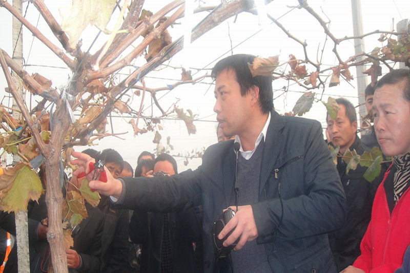 培訓班邀請省農(nóng)科院園藝所、省果樹產(chǎn)業(yè)技術(shù)體系專家高正輝副研究員和潘海發(fā)博士授課,主要講授了葡萄、桃的冬季整形修剪、肥水管理和病蟲害防治技術(shù)措施,采取課堂講座、現(xiàn)場指導相結(jié)合的方式進行。在淮南農(nóng)場葡萄基地,專家與參訓果農(nóng)零距離接觸,現(xiàn)場指導葡萄修剪并解答生產(chǎn)技術(shù)疑難問題。(陳新)