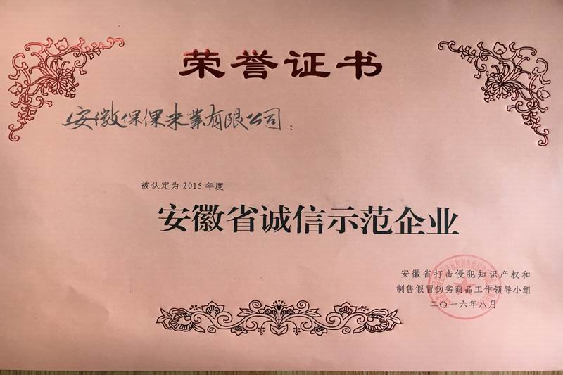 日前,安徽農墾倮倮米業有限公司從省商務廳領取了“2015年度安徽省誠信示范企業”獎牌和榮譽證書。