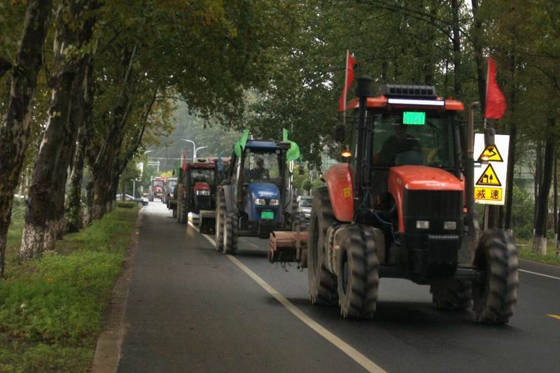1015,安徽龍亢農場35臺大馬力拖拉機浩浩蕩蕩開進五河縣省級大新現代生態農業產業化示范區,開辟現代農服發展新天地。開拔前,在農業八分場舉行了簡短動員會,龍亢農服公司管理人員及農機手參加。