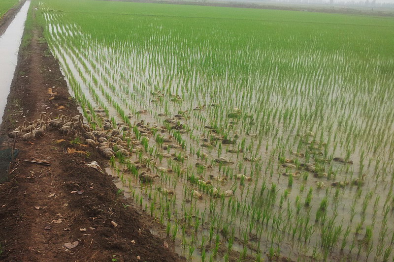 625,大壙圩農場一管區150畝有機稻試驗示范田里,由于較早完成了夏種,目前秧苗已返青活棵,近日投放的2800多只鴨苗也在茁壯成長。