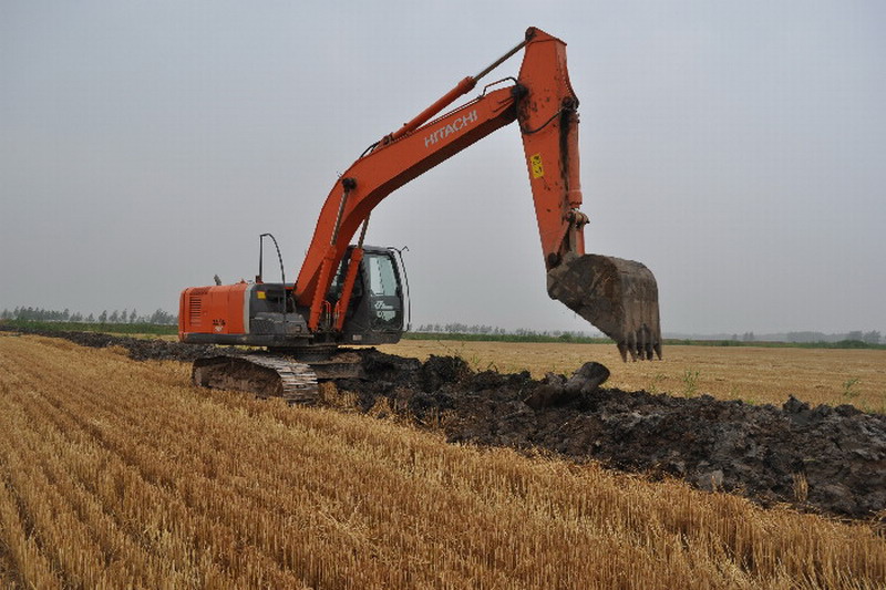 連日來,潘村湖農場抓住午收夏種間隙大打水利穿插戰,組織多臺大型挖掘機對條田溝進行清淤疏浚,確保溝渠通暢,利于抗旱排澇。圖為機械疏浚場景。(楊登宏)