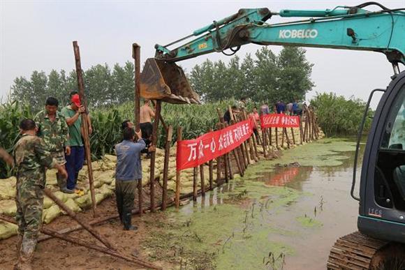 7月7日清晨4點,華陽河五場80多人的黨員突擊隊搶險隊就開始了搶筑西圩生命圩堤的戰(zhàn)斗。黨員搶險隊隊員們頂著烈日,打樁、運樁、裝包、杠包,壓包,汗水裹著泥水,爭分奪秒,奮力封堵著缺口直到上午10時,那些沒有來得吃早飯的隊員們簡單地吃點餅干,喝點礦泉水,又繼續(xù)投入戰(zhàn)斗,傍晚7點多鐘。歷時14個小時,共動用挖掘機2臺,打木樁100余根,碼放編織袋2000余包,搶打隔堤高程達18.5米,成功完成了缺口封堵,保住了西圩生命線,創(chuàng)造了潰口重建的“奇跡”!