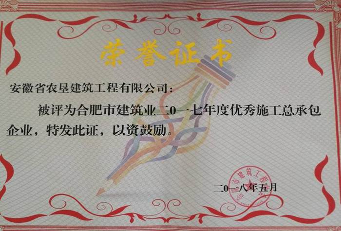 近日,合肥市城鄉建設委攜手市建筑工程協會舉辦全市建筑業2017年度先進表彰活動,墾建公司被授予優秀施工總承包企業”“優秀勞務企業等多項榮譽稱號。